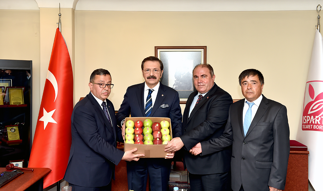 TOBB Başkanı M. Rifat Hisarcıklıoğlu, Isparta Ticaret Borsası Başkanı Ahmet Adar’ı makamında ziyaret etti. Adar ve Hisarcıklıoğlu karşılıklı görüş alışverişinde bulunurken, günün anısına karşılıklı hediyeler takdim edildi.