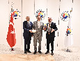 Türkiye Odalar ve Borsalar Birliği (TOBB) Başkanı M. Rifat Hisarcıklıoğlu, Manavgat Ticaret ve Sanayi Odası (MATSO) Yönetim Kurulu Başkanı Seydi Tahsin Güngör'ü makamında kabul etti.