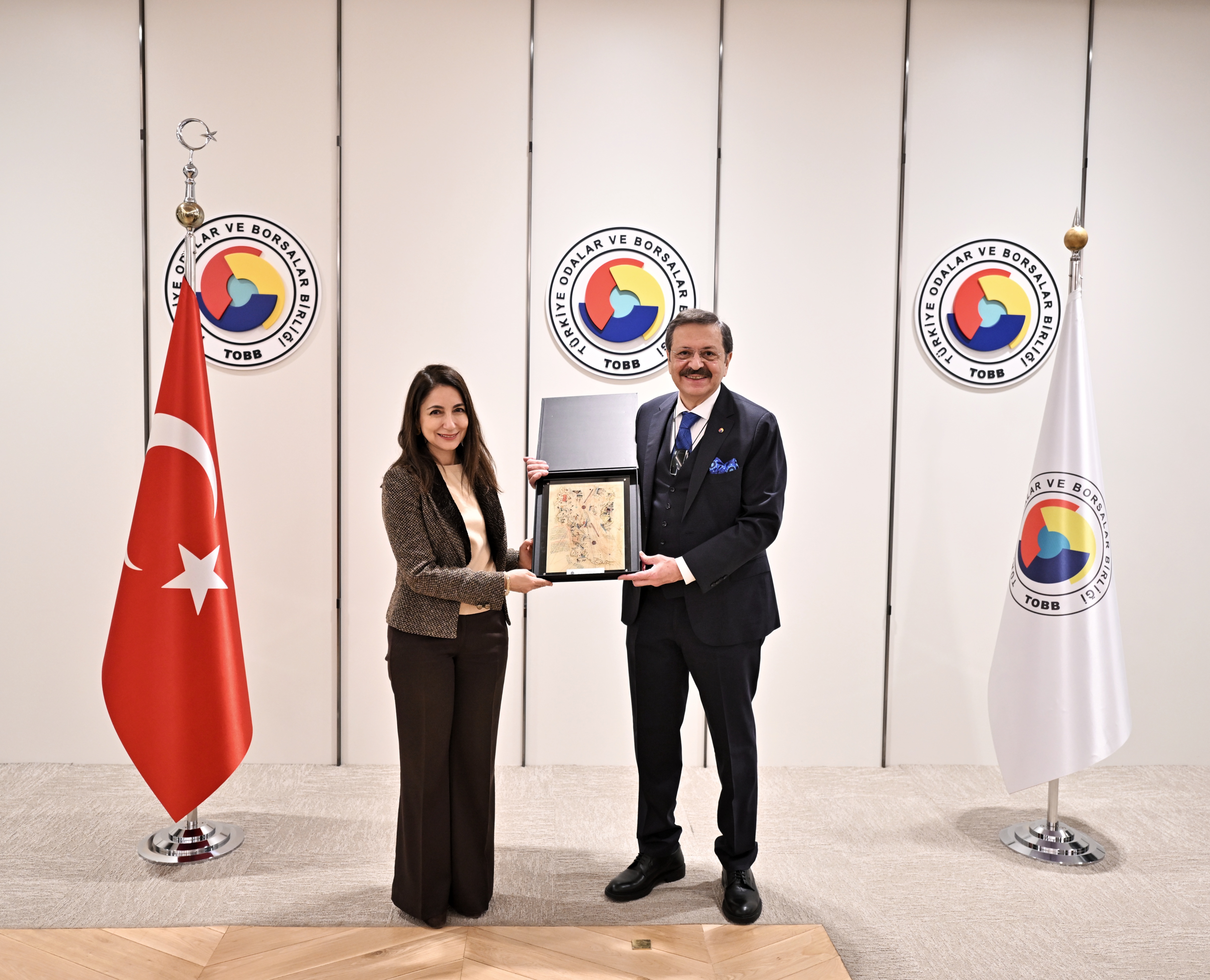 Türkiye Odalar ve Borsalar Birliği (TOBB) Başkanı M. Rifat Hisarcıklıoğlu, Avrupa Birliği Nezdinde Türkiye Daimi Temsilciliği görevine atanan Büyükelçi Yaprak Balkan’ı TOBB İkiz Kuleler’de ağırladı. Görüşmede, Türkiye-AB ilişkileri değerlendirildi.