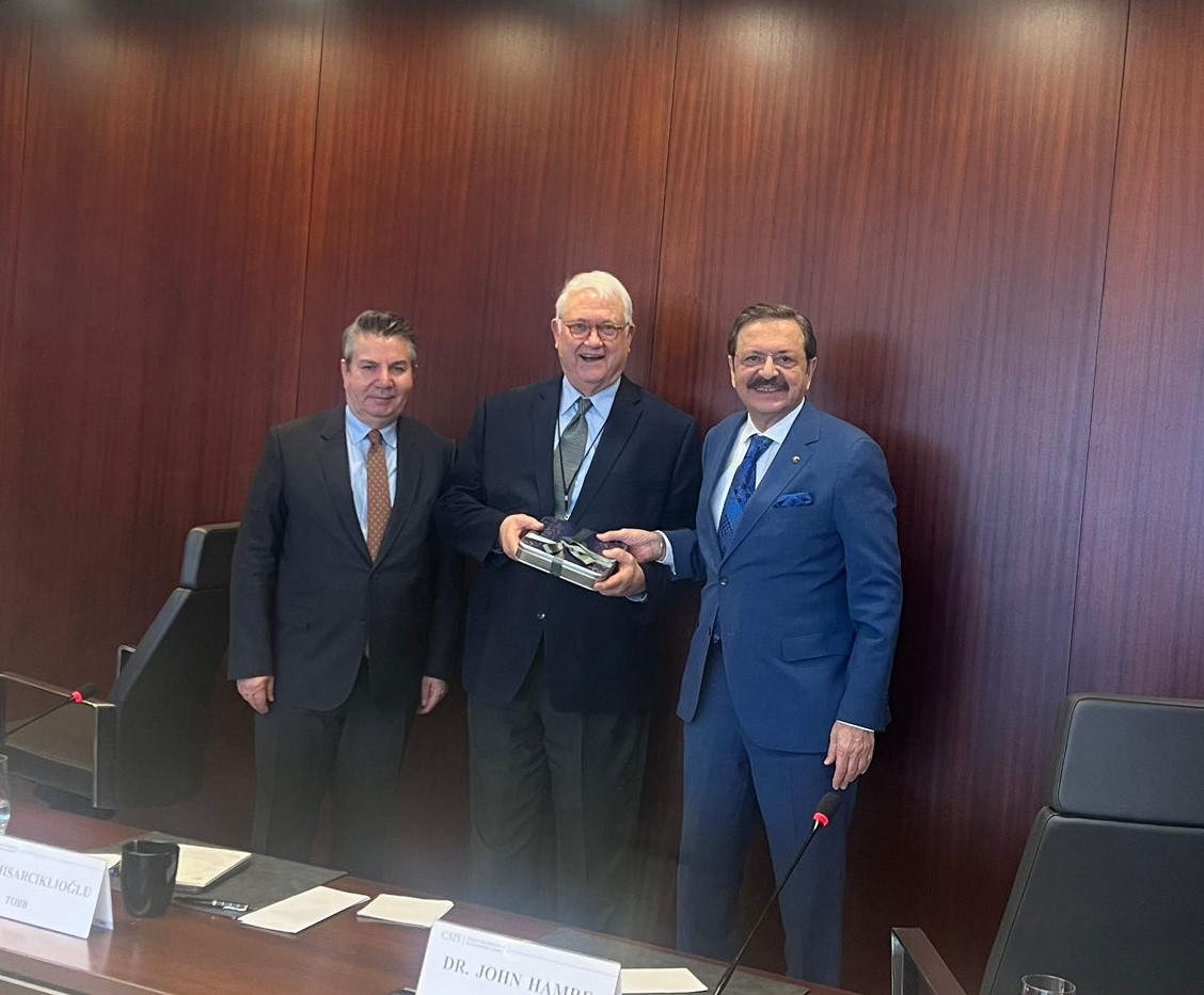 M. Rifat Hisarcıklıoğlu, President of the Union of Chambers and Commodity Exchanges of Türkiye (TOBB), participated in a roundtable meeting organized by the Center for Strategic and International Studies (CSIS), a Washington-based think tank, as part of his US program. The meeting, which addressed Türkiye-US relations, evaluated opportunities for cooperation in third countries.