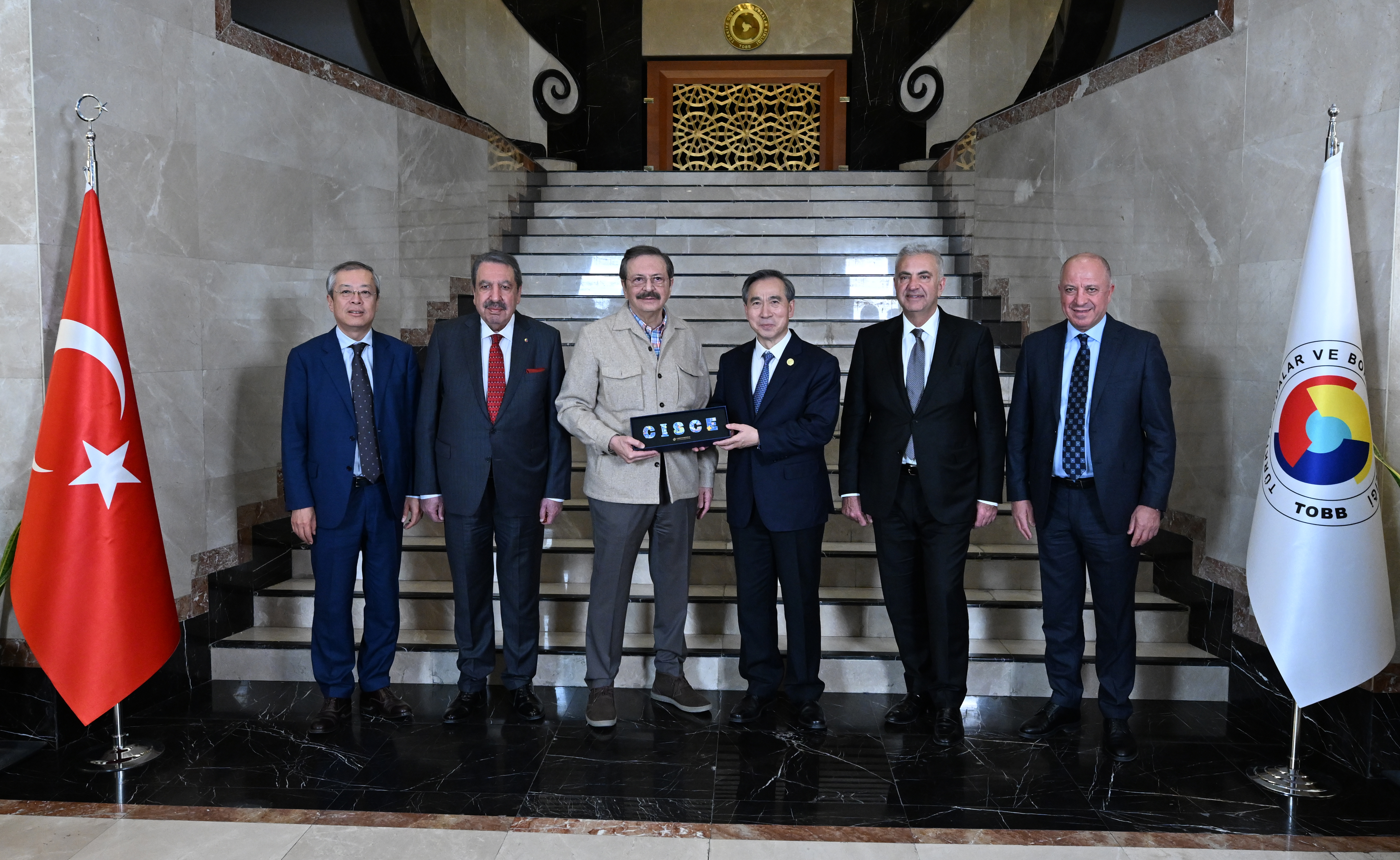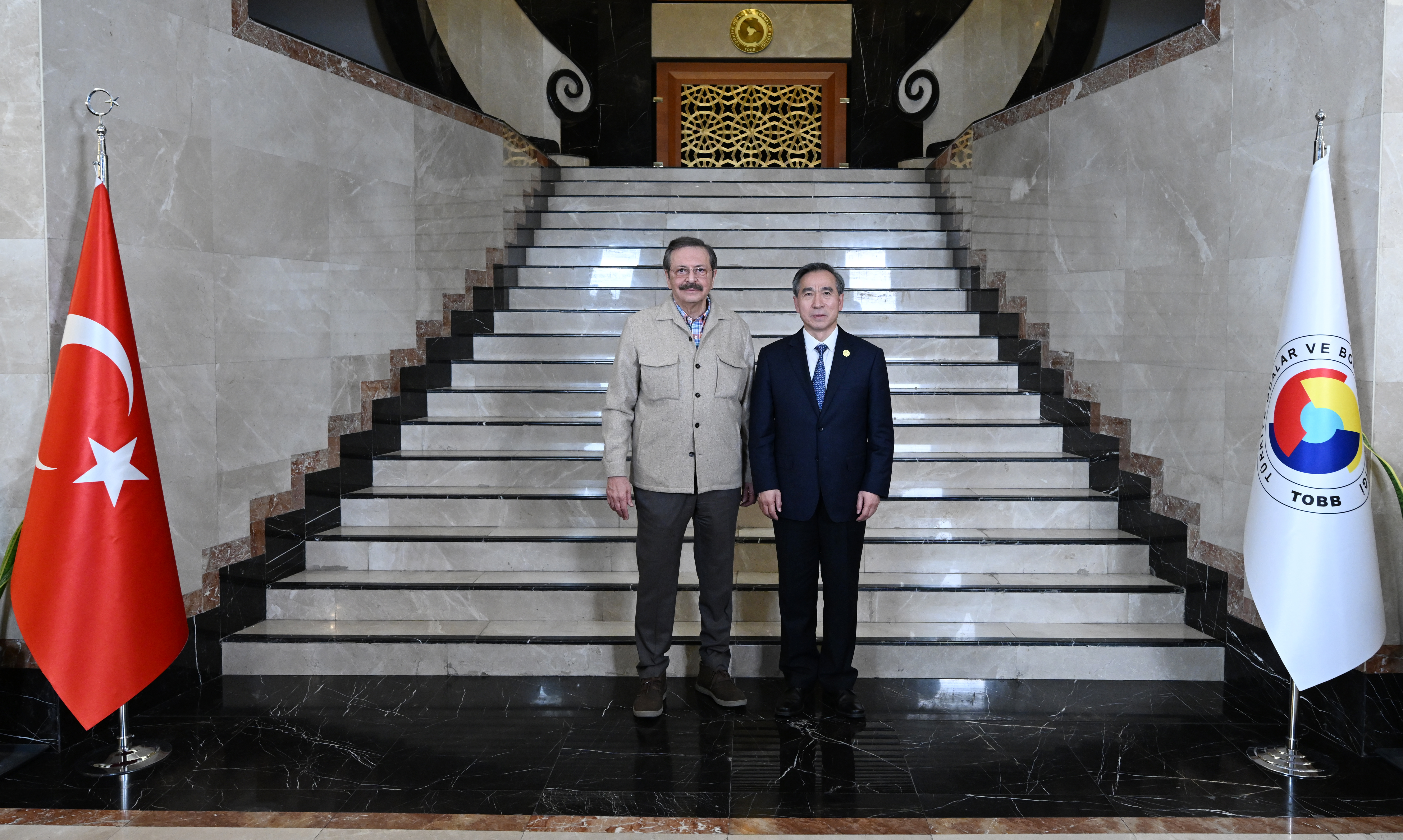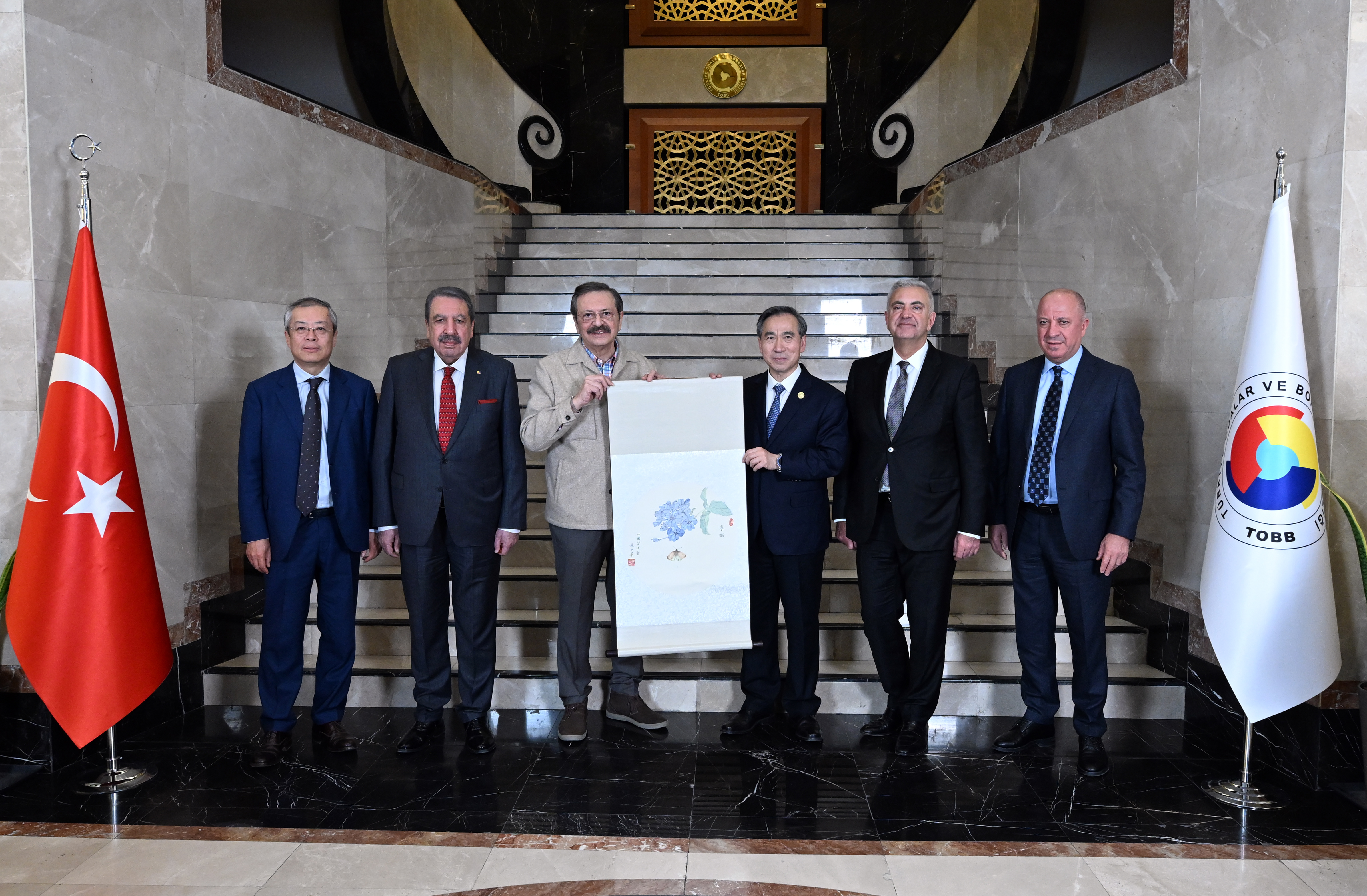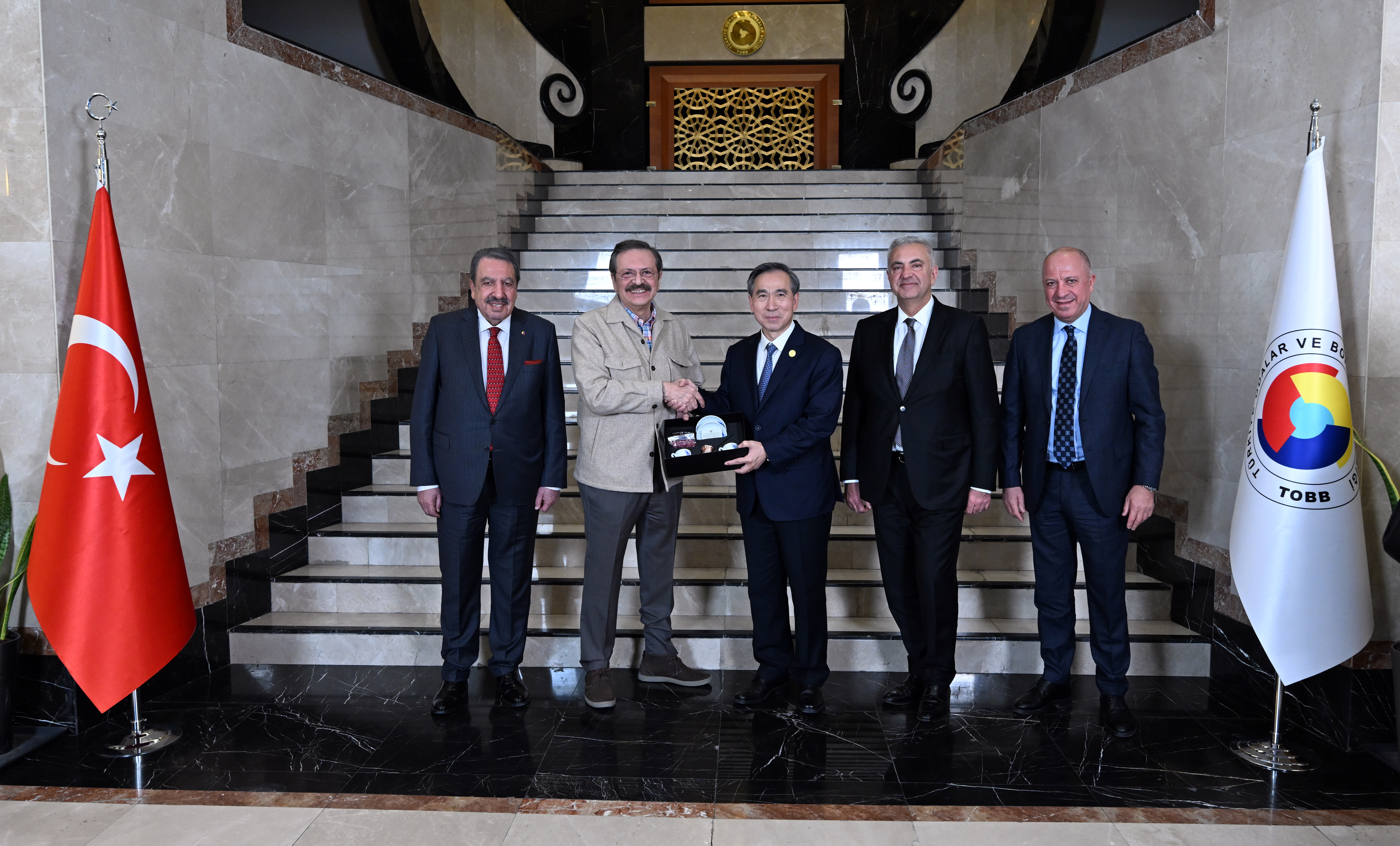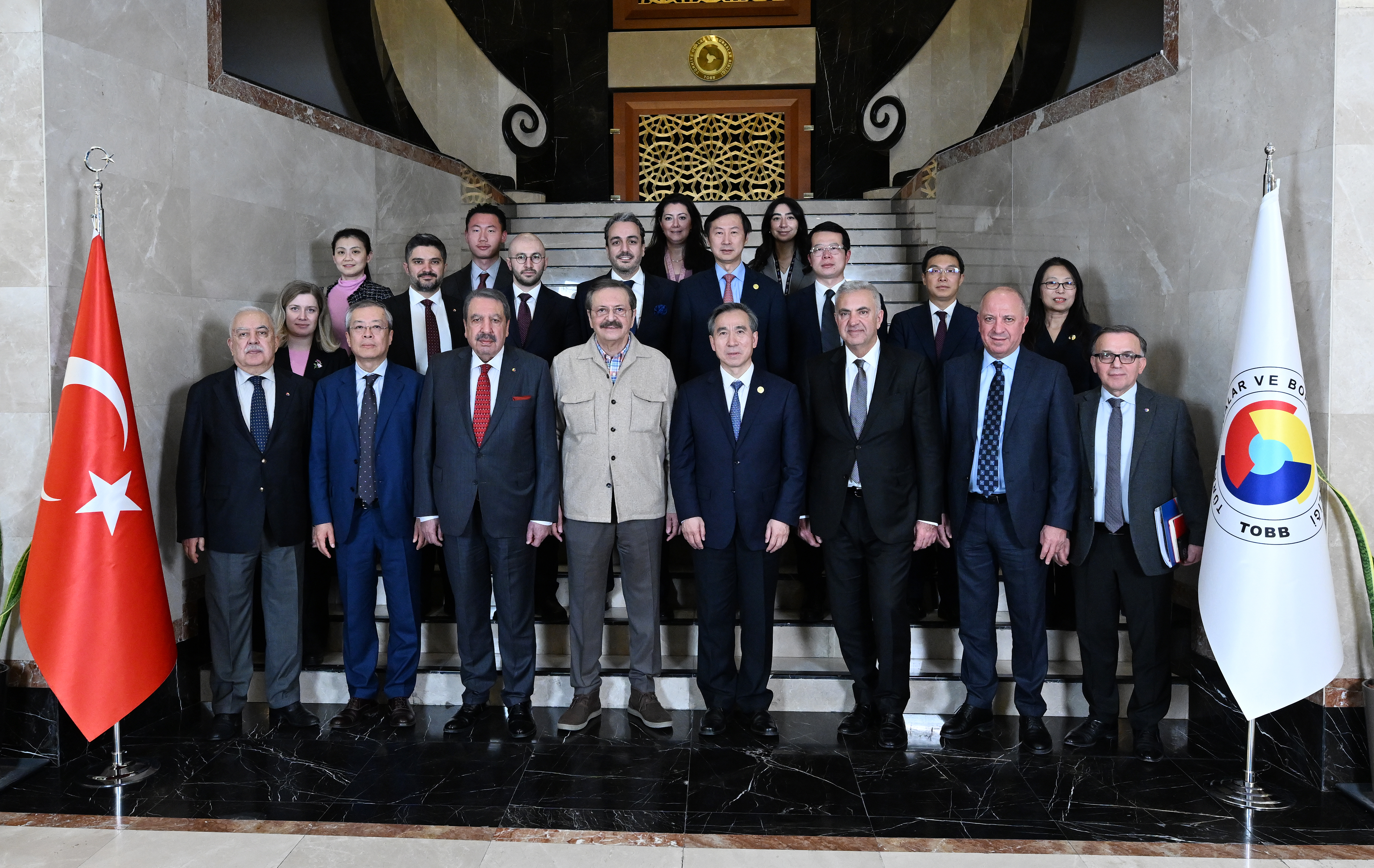 M. Rifat Hisarcıklıoğlu, President of the Union of Chambers and Commodity Exchanges of Türkiye (TOBB), met with Ren Hongbin, President of the China Council for the Promotion of International Trade (CCPIT) and the China Chamber of International Commerce, and his delegation at the TOBB Twin Towers. During the meeting, Türkiye-China economic and trade relations and cooperation opportunities were discussed.