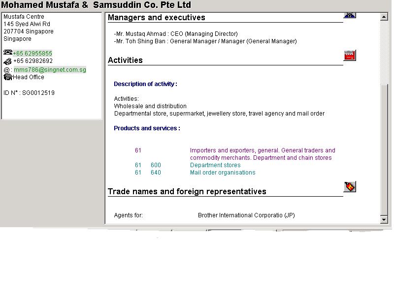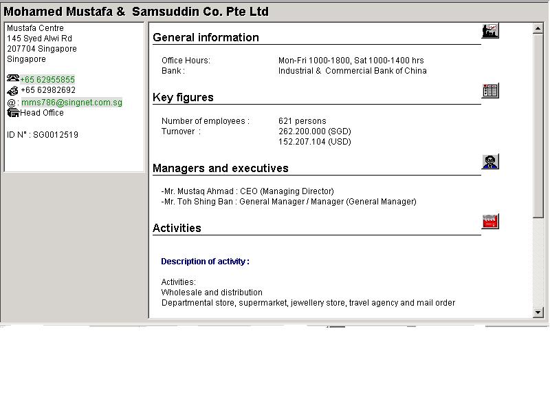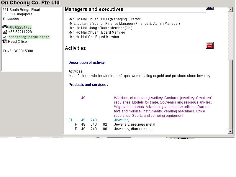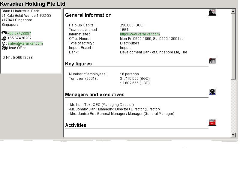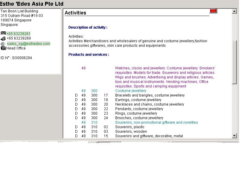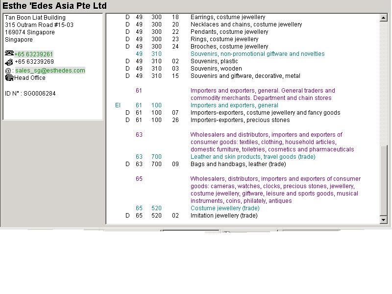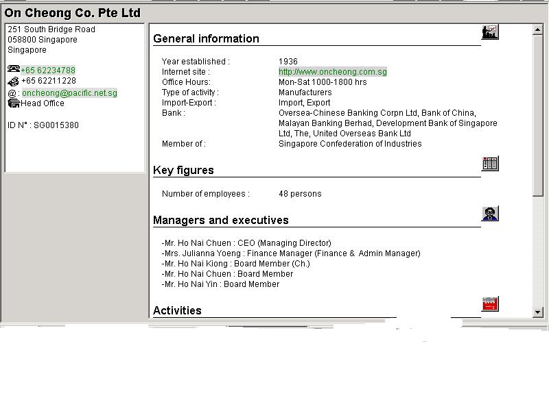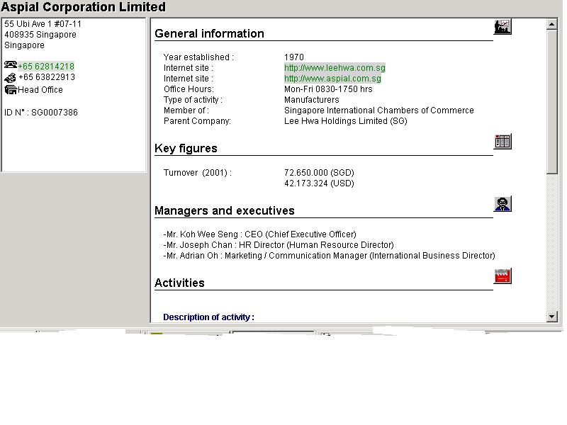 Bu web sayfasi yardimiyla, Singapur, Malezya, Hong-Kong, Tayland, Tayvan, Endonezya, Bruney ve Filipinler de mevcut olan firma bilgilerine ulasmak mümkündür.